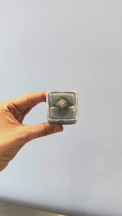 Square silver green ring