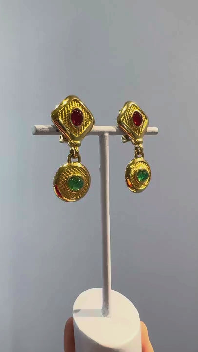 « David Grau » golden red and green dangly clips