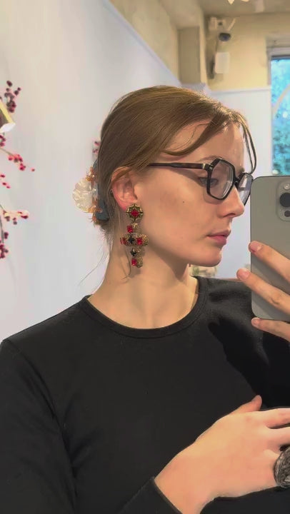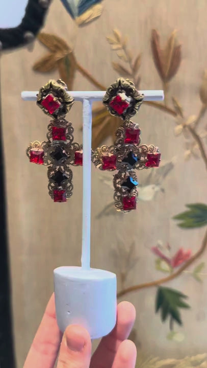 Rare red openwork cross dangly clips