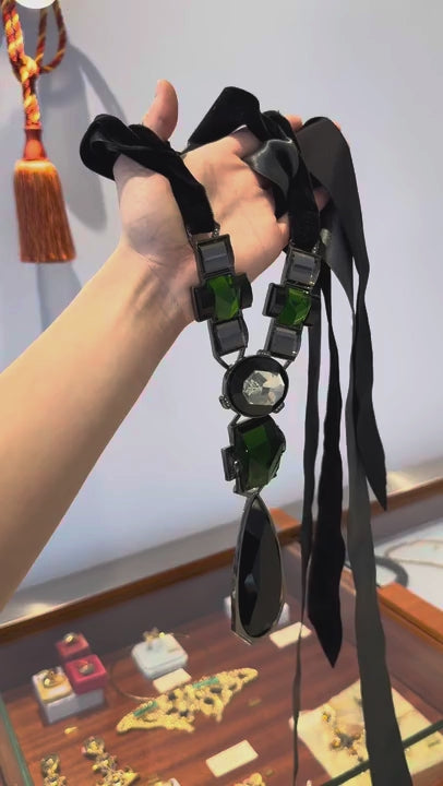 “Appartement à louer” green statement ribbon necklace